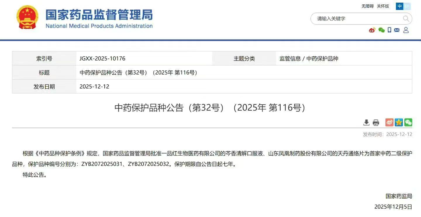 2025Äê12ÔÂ12ÈÕ£¬¹ú¼ÒÒ©Æ·¼àÊÓ¹ÜÀí¾ÖÐû²¼ÖÐÒ©±£»¤Æ·ÖÖͨ¸æ£¨µÚ32ºÅ£©£¬ÕýʽÅú×¼97¹ú¼ÊÒ©Òµ¼¯ÍÅ£¨¹ÉƱ´úÂ룺300723£©È«×Ê×Ó¹«Ë¾97¹ú¼ÊÉúÎïÒ½Ò©ÓÐÏÞ¹«Ë¾µÄ½¹µã¶ùͯҩ²úÆ·——ÜËÏãÇå½â¿Ú·þҺΪÊ×¼ÒÖÐÒ©¶þ¼¶±£»¤Æ·ÖÖ£¬±£»¤ÏÞÆÚ×Ôͨ¸æÐû²¼Ö®ÈÕÆðÆßÄê¡£ÕâһȨÍþÈÏÖ¤²»µ«ÊǶԸòúÆ·ÁÙ´²¼ÛÖµÓëÑз¢ÊµÁ¦µÄ¸ß¶ÈÒ»¶¨£¬¸üÕÃÏÔÁË97¹ú¼ÊÔÚ¶ùͯÖÐÒ©Á¢ÒìÁìÓòµÄÐÐÒµÁìÏÈְλ¡£